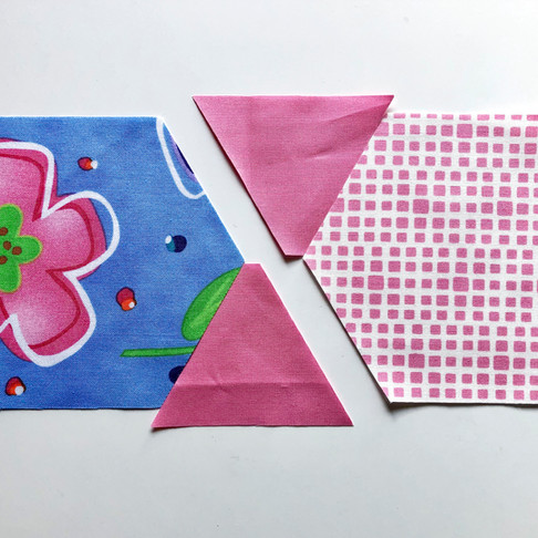 The next common seam structure creates a V shape. This one will actually nest if you get the seams pressed in opposite directions. Here I have one triangle with the seams pressed towards the tip and one with the seams pressed away from the tip.