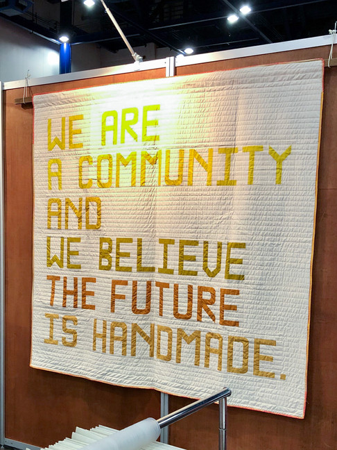 One thing I saw, that made me really excited, was the use of unconventional fabric in quilting. There was this whole quilt pieced out of gauze, it was the softest thing! And then there was Violet Craft's booth that was mostly velveteen wovens mixed in with her new collection. I think the quilting world is turning over a new leaf :)